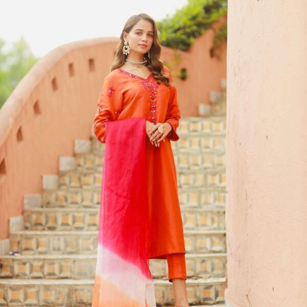 Step into the season with our stunning mustard ensemble, complete with a vibrant dupatta. Embrace the festive spirit in style!